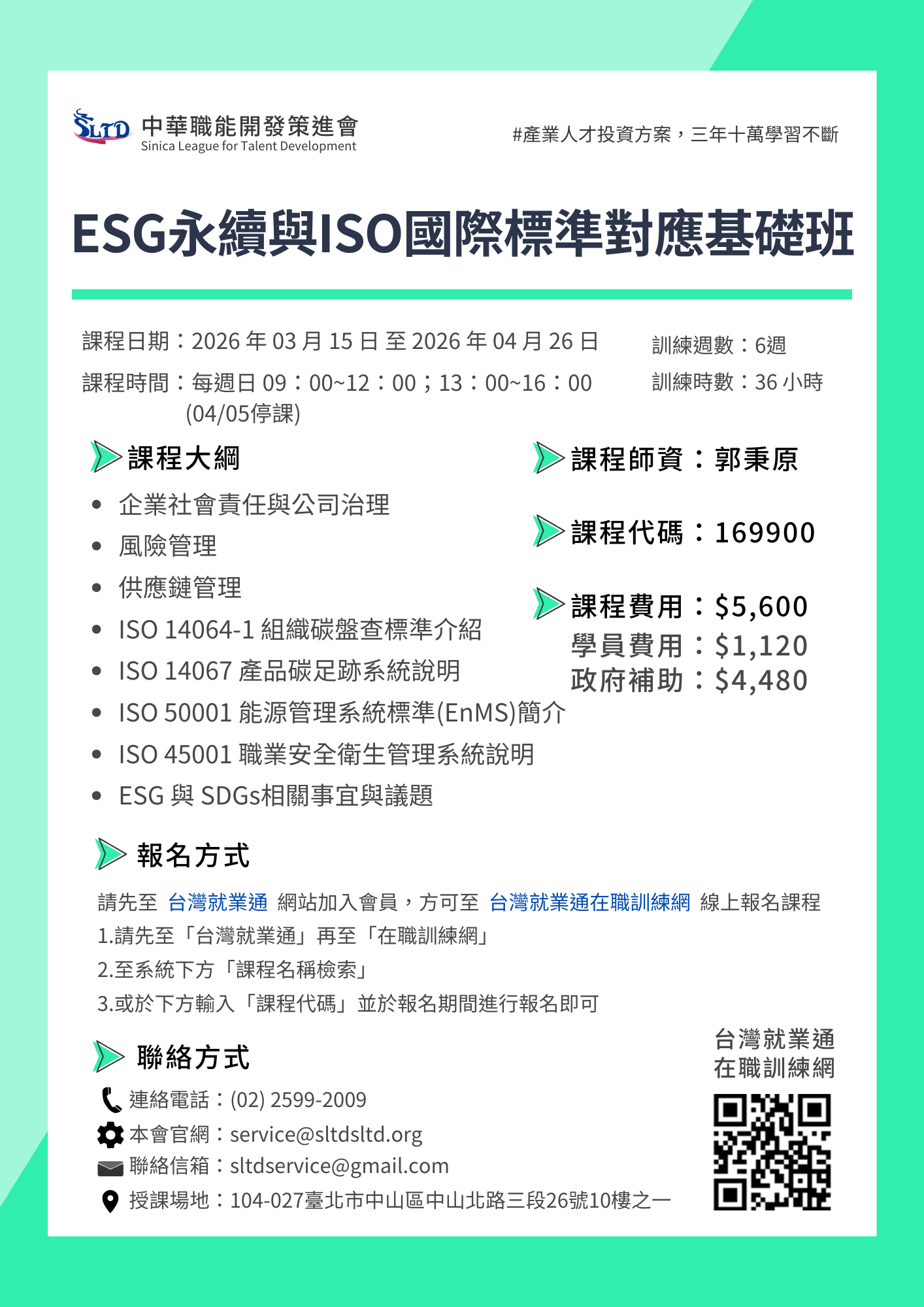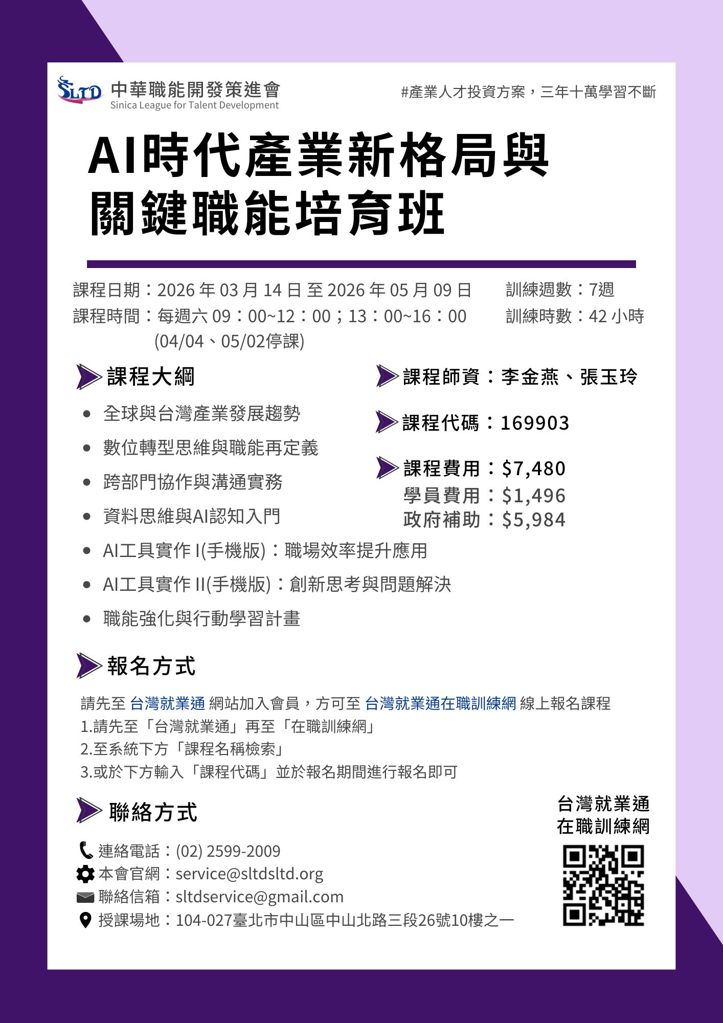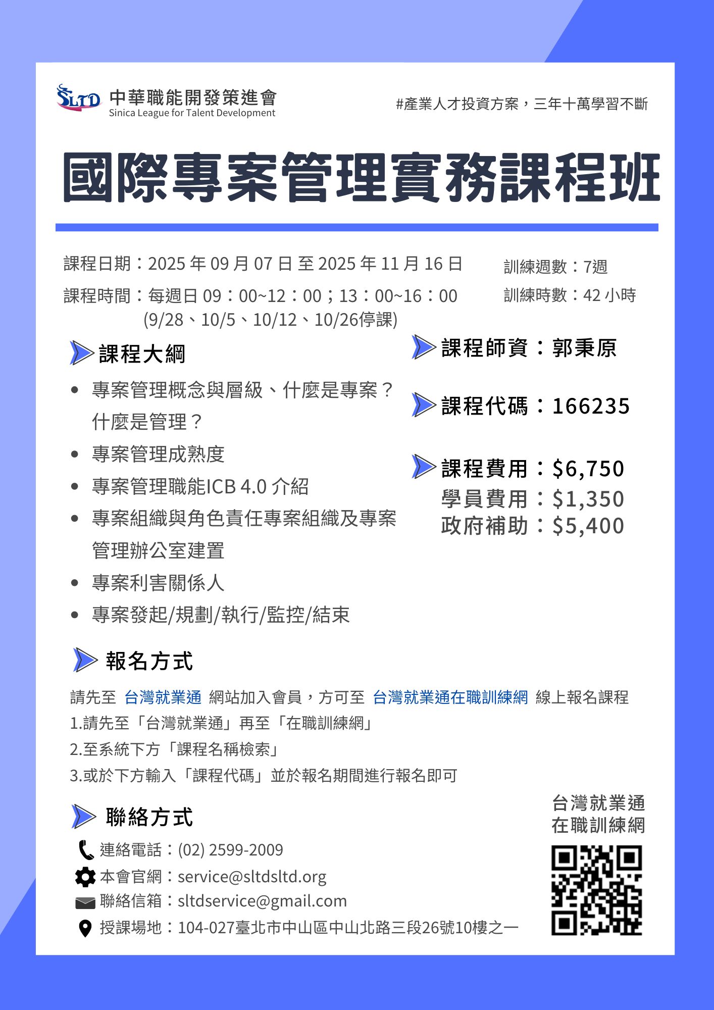 政府為提升在職勞工知識、技能、態度,結合訓練單位辦理多元化實務導向的訓練課程。